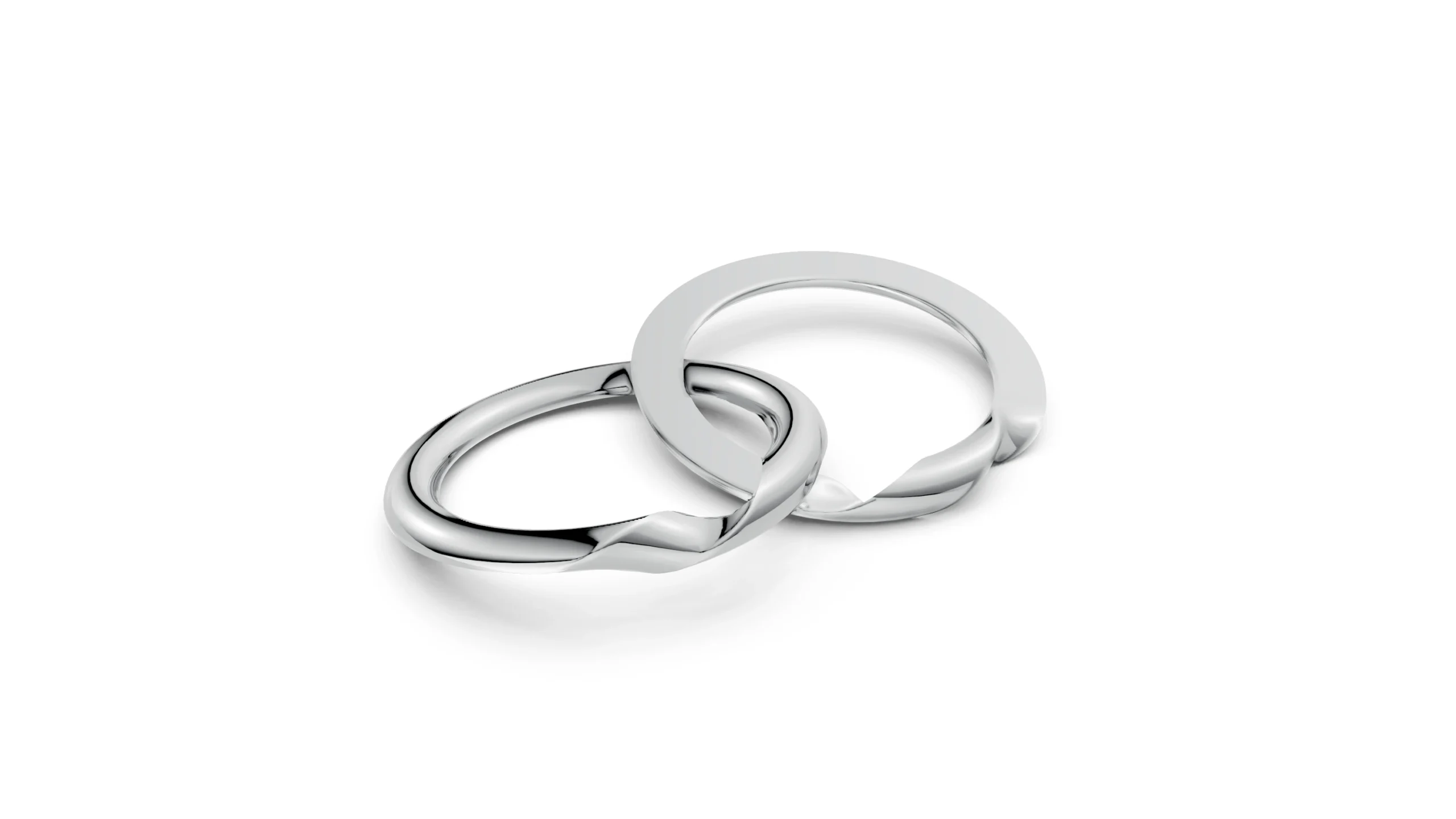 Conjunto de anéis articulados com sistema de encaixe de precisão. Este modelo consiste em dois aros que se separam, mas que, quando unidos, formam uma peça única. Oferecemos a opção de gravação a laser na parte interna, onde você pode eternizar nomes, datas e símbolos.
