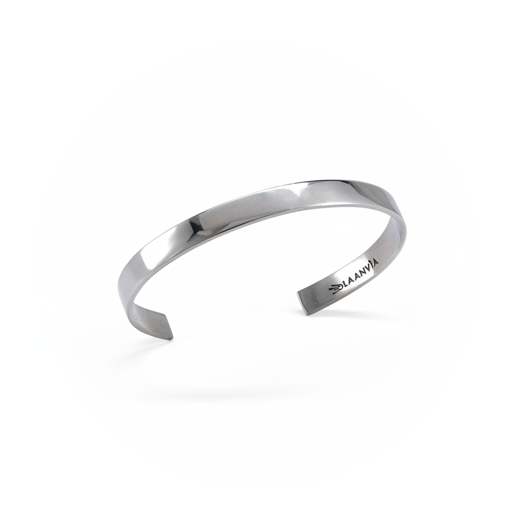 Pulseira unissex feita em prata 950 com acabamento polido e design minimalista. O brilho espelhado da prata realça o visual moderno e sofisticado, ideal para quem busca uma joia discreta e versátil.